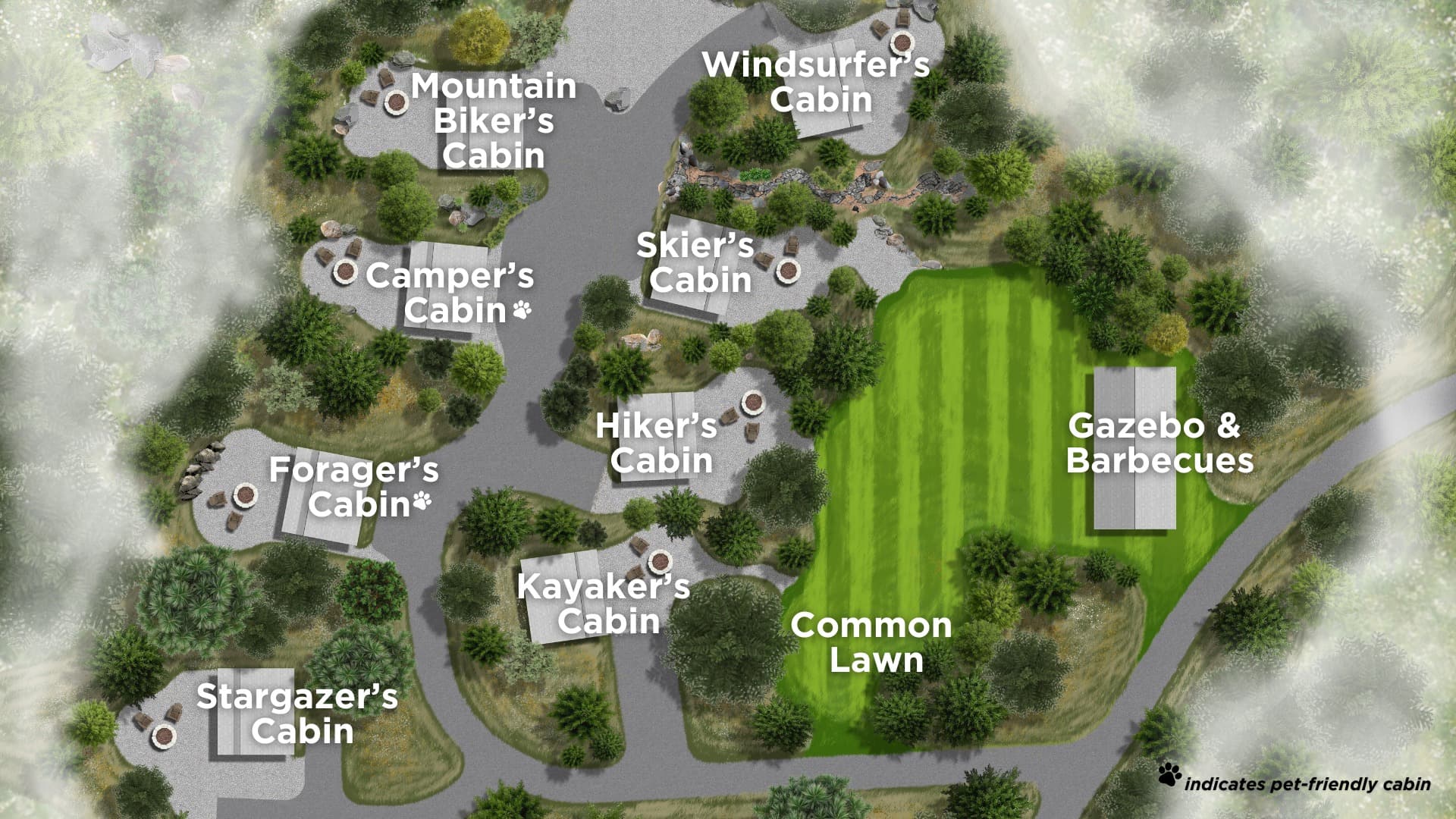 Previous slideSlide 1 / of 1Next slideAvailability shown after selecting dates.Whole Property RentalEach Cabin features a King Bed + Queen Pull-Out Bed in Living RoomFrom $1,800 / night